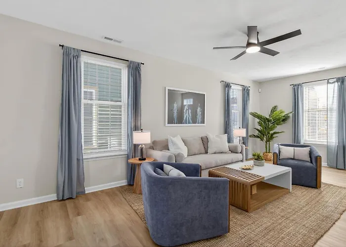 This Portsmouth holiday home is 14 km from North Camellia Acres, while the Skipjack Nautical Wares & Marine Art Gallery is 16 minutes' walk away. 3Br 2'5 Ba King Suite Fenced Yard Parking villa is only a few steps from First Baptist Church Elm Avenue.